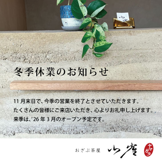 11月末日で、基本的には今季の営業を終了とさせていただきます。